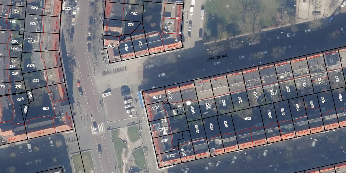 Jekerstraat 79-H is gelegen op kadastraal perceel ASD18V10813. Deze kadastrale aanduiding is uniek en wordt gebruikt door het Kadaster om eigendomsrechten en andere zakelijke rechten vast te leggen. Het perceel maakt onderdeel uit van de kadastrale gemeente Amsterdam.