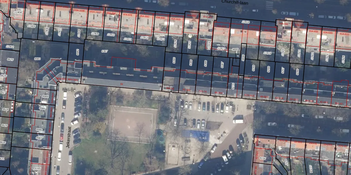 Jekerstraat 80-1 is gelegen op kadastraal perceel ASD18V8390. Deze kadastrale aanduiding is uniek en wordt gebruikt door het Kadaster om eigendomsrechten en andere zakelijke rechten vast te leggen. Het perceel maakt onderdeel uit van de kadastrale gemeente Amsterdam.