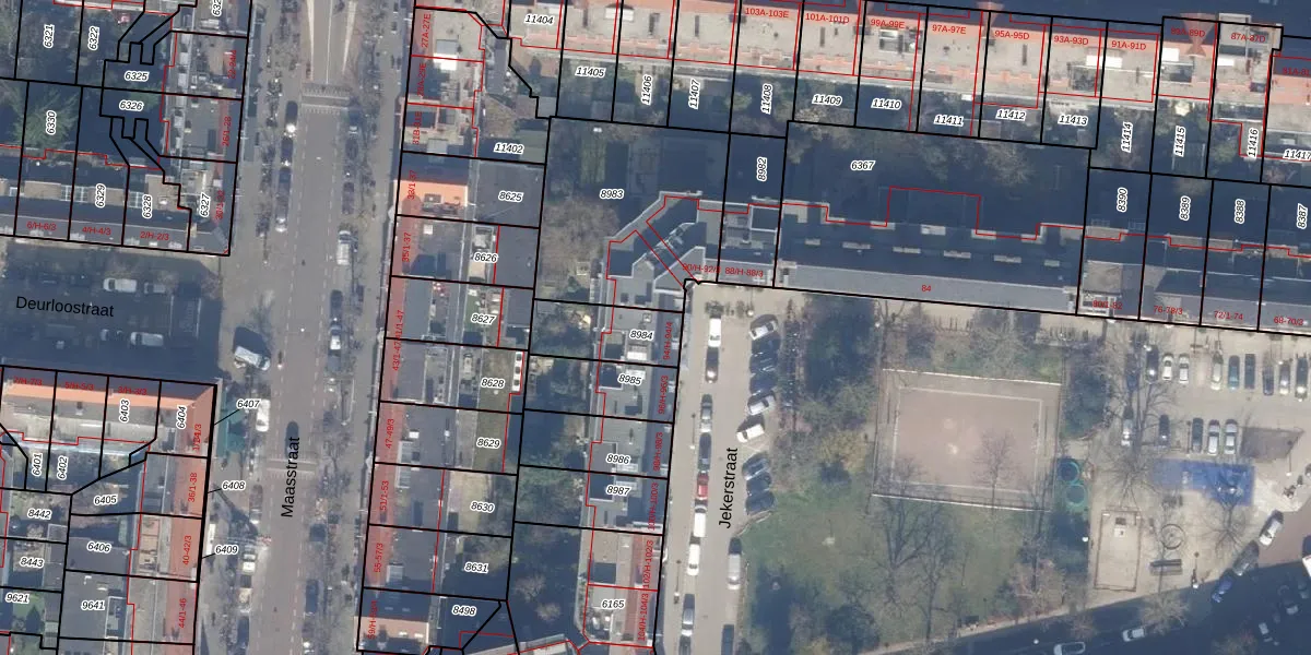 Jekerstraat 94-2 is gelegen op kadastraal perceel ASD18V8984. Deze kadastrale aanduiding is uniek en wordt gebruikt door het Kadaster om eigendomsrechten en andere zakelijke rechten vast te leggen. Het perceel maakt onderdeel uit van de kadastrale gemeente Amsterdam.