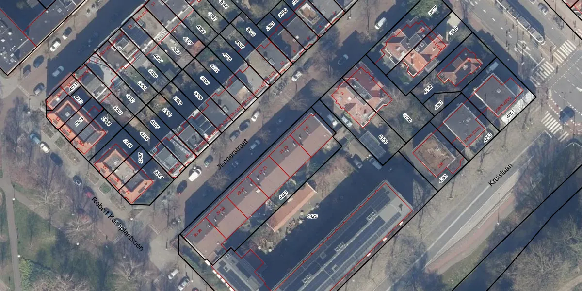 Het perceel waarop Jennerstraat 13 staat heeft een oppervlakte van 1053 m². Dit is een zeer groot perceel. De perceeloppervlakte wordt geregistreerd door het Kadaster. Gedetailleerde informatie over de maten van dit perceel kunt u vinden in het rapport Kadastrale kaart met maatvoering van Jennerstraat 13.