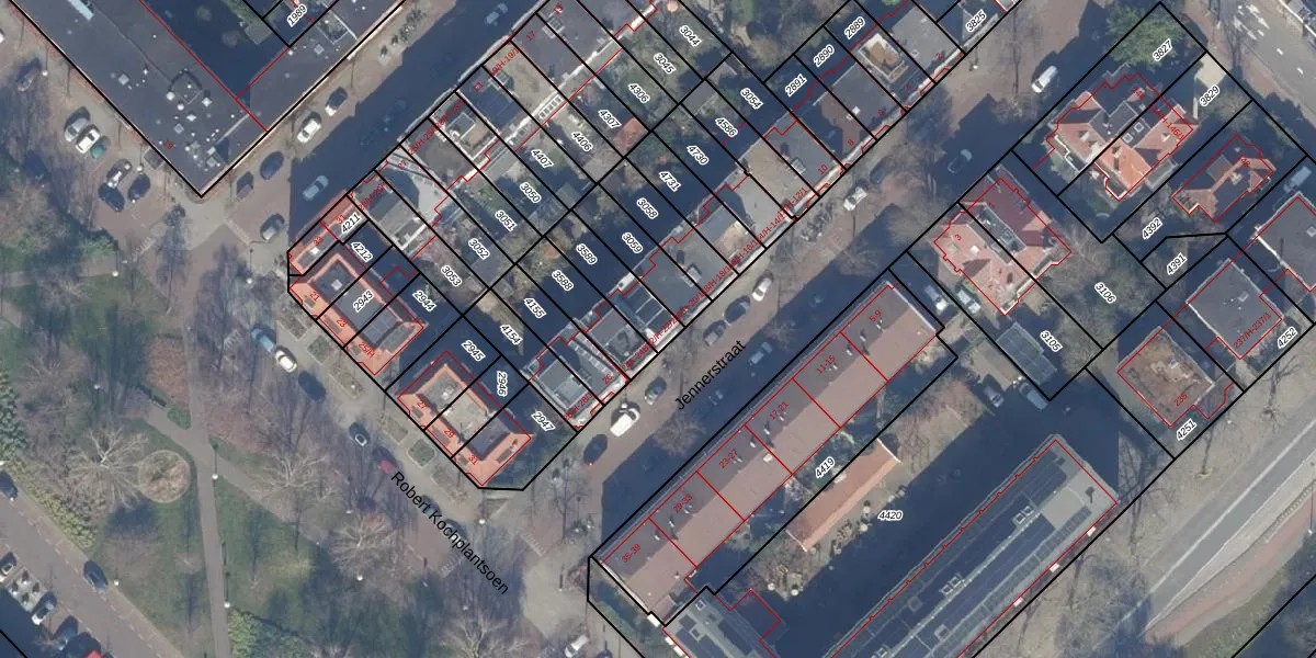 Het perceel waarop Jennerstraat 22-H staat heeft een oppervlakte van 141 m². Dit is een middelgroot perceel. De perceeloppervlakte wordt geregistreerd door het Kadaster. Gedetailleerde informatie over de maten van dit perceel kunt u vinden in het rapport Kadastrale kaart met maatvoering van Jennerstraat 22-H.