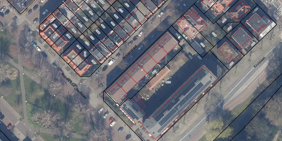Het perceel waarop Jennerstraat 27 staat heeft een oppervlakte van 1053 m². Dit is een zeer groot perceel. De perceeloppervlakte wordt geregistreerd door het Kadaster. Gedetailleerde informatie over de maten van dit perceel kunt u vinden in het rapport Kadastrale kaart met maatvoering van Jennerstraat 27.