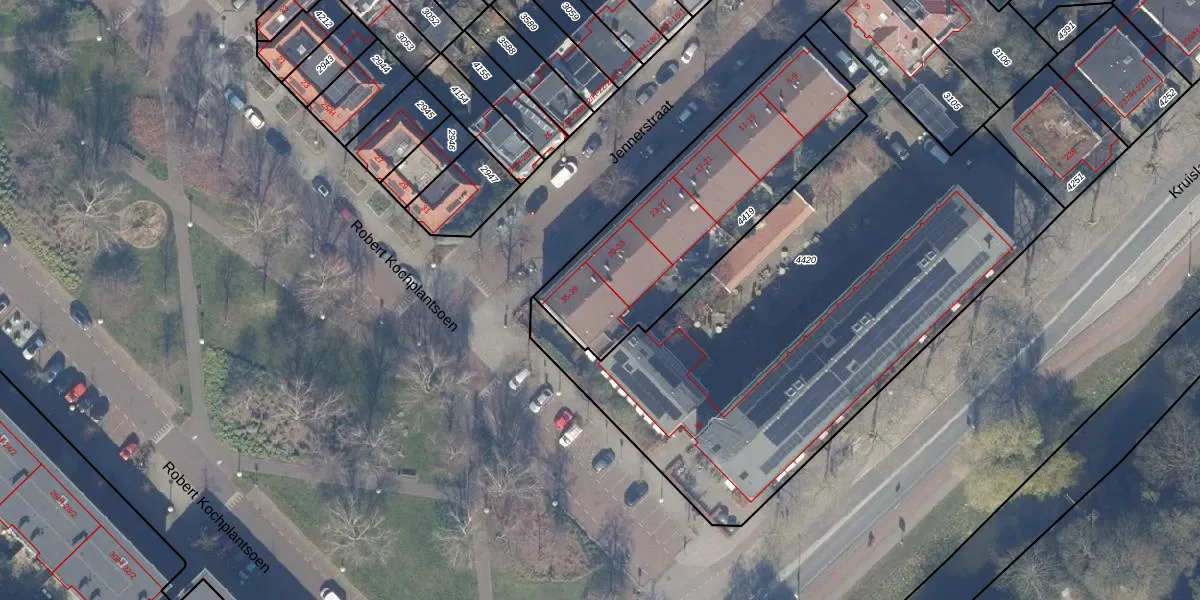 Het perceel waarop Jennerstraat 39 staat heeft een oppervlakte van 1053 m². Dit is een zeer groot perceel. De perceeloppervlakte wordt geregistreerd door het Kadaster. Gedetailleerde informatie over de maten van dit perceel kunt u vinden in het rapport Kadastrale kaart met maatvoering van Jennerstraat 39.