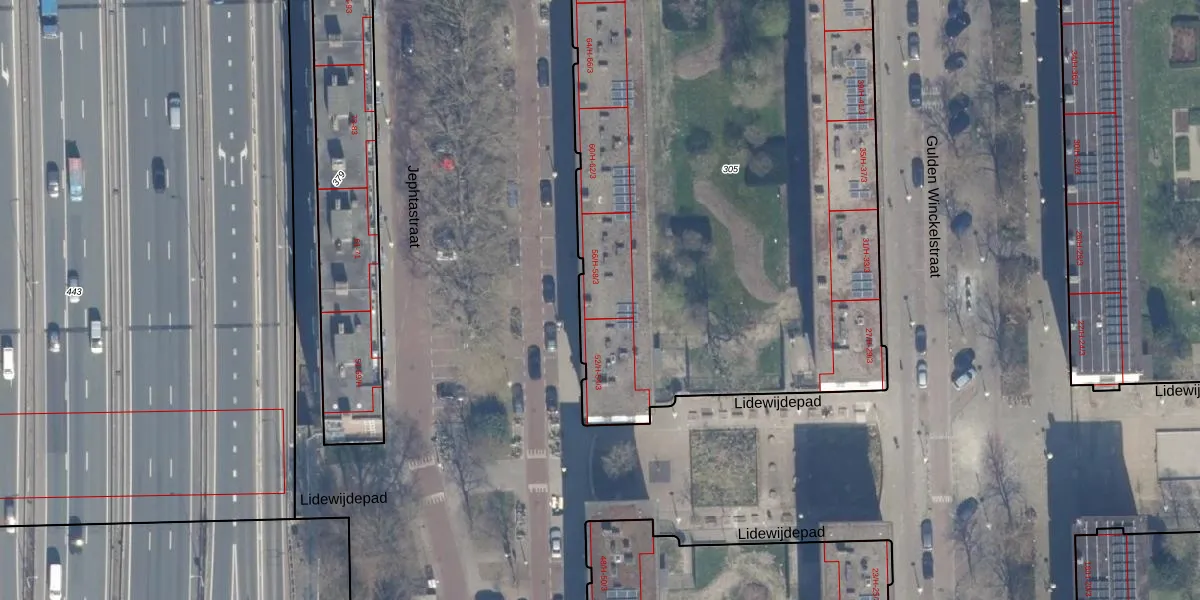 Het perceel waarop Jephtastraat 56-3 staat heeft een oppervlakte van 4237 m². Dit is een zeer groot perceel. De perceeloppervlakte wordt geregistreerd door het Kadaster. Gedetailleerde informatie over de maten van dit perceel kunt u vinden in het rapport Kadastrale kaart met maatvoering van Jephtastraat 56-3.