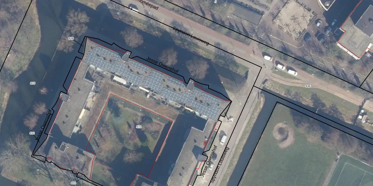 Het perceel waarop Jesse Owenshof 14 staat heeft een oppervlakte van 5940 m². Dit is een zeer groot perceel. De perceeloppervlakte wordt geregistreerd door het Kadaster. Gedetailleerde informatie over de maten van dit perceel kunt u vinden in het rapport Kadastrale kaart met maatvoering van Jesse Owenshof 14.