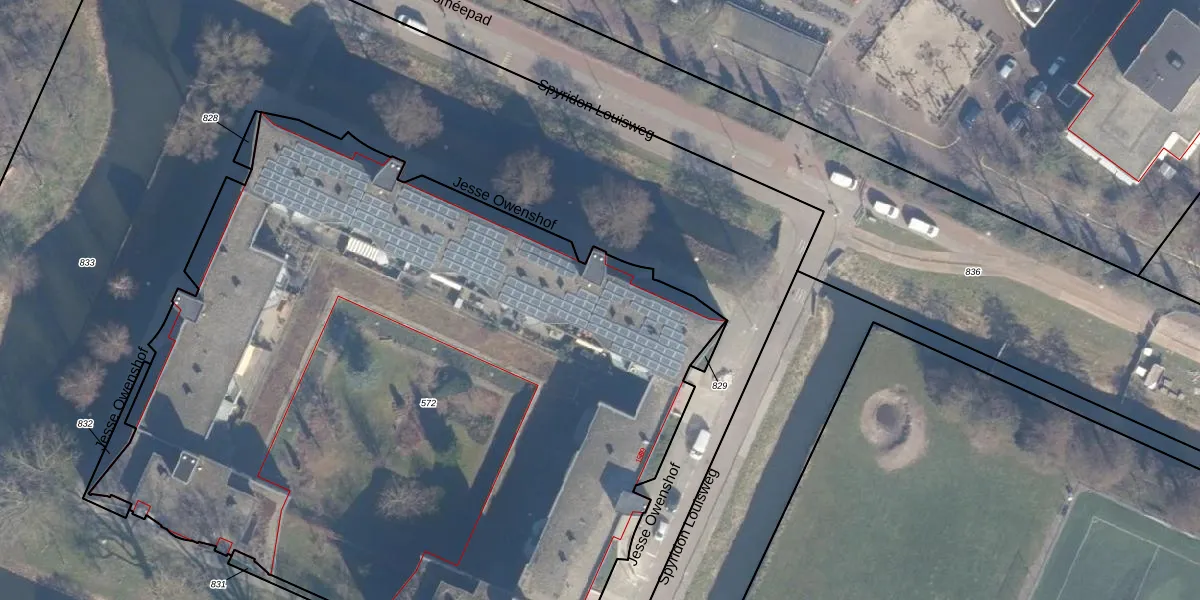 Het perceel waarop Jesse Owenshof 29 staat heeft een oppervlakte van 5940 m². Dit is een zeer groot perceel. De perceeloppervlakte wordt geregistreerd door het Kadaster. Gedetailleerde informatie over de maten van dit perceel kunt u vinden in het rapport Kadastrale kaart met maatvoering van Jesse Owenshof 29.
