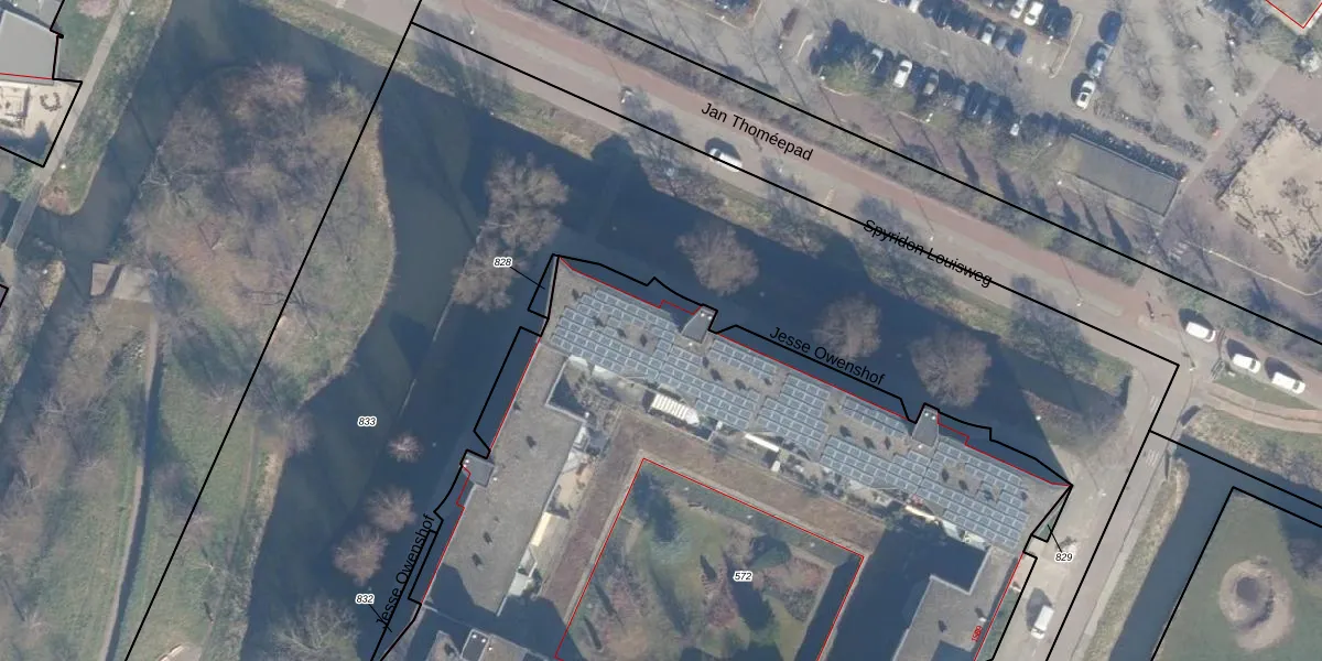 Het perceel waarop Jesse Owenshof 35 staat heeft een oppervlakte van 5940 m². Dit is een zeer groot perceel. De perceeloppervlakte wordt geregistreerd door het Kadaster. Gedetailleerde informatie over de maten van dit perceel kunt u vinden in het rapport Kadastrale kaart met maatvoering van Jesse Owenshof 35.