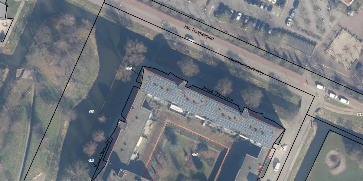 Het perceel waarop Jesse Owenshof 41 staat heeft een oppervlakte van 5940 m². Dit is een zeer groot perceel. De perceeloppervlakte wordt geregistreerd door het Kadaster. Gedetailleerde informatie over de maten van dit perceel kunt u vinden in het rapport Kadastrale kaart met maatvoering van Jesse Owenshof 41.