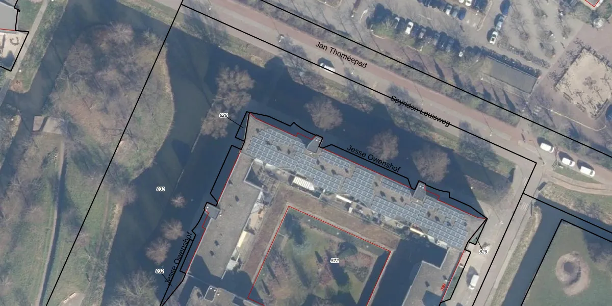 Het perceel waarop Jesse Owenshof 42 staat heeft een oppervlakte van 5940 m². Dit is een zeer groot perceel. De perceeloppervlakte wordt geregistreerd door het Kadaster. Gedetailleerde informatie over de maten van dit perceel kunt u vinden in het rapport Kadastrale kaart met maatvoering van Jesse Owenshof 42.