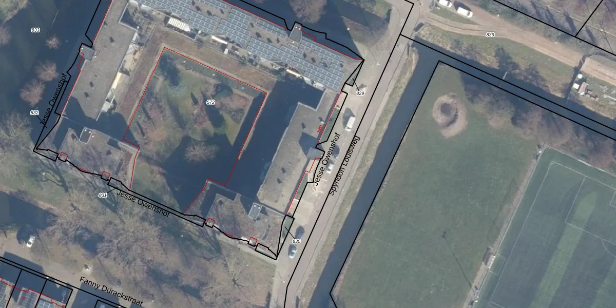 Het perceel waarop Jesse Owenshof 5 staat heeft een oppervlakte van 5940 m². Dit is een zeer groot perceel. De perceeloppervlakte wordt geregistreerd door het Kadaster. Gedetailleerde informatie over de maten van dit perceel kunt u vinden in het rapport Kadastrale kaart met maatvoering van Jesse Owenshof 5.