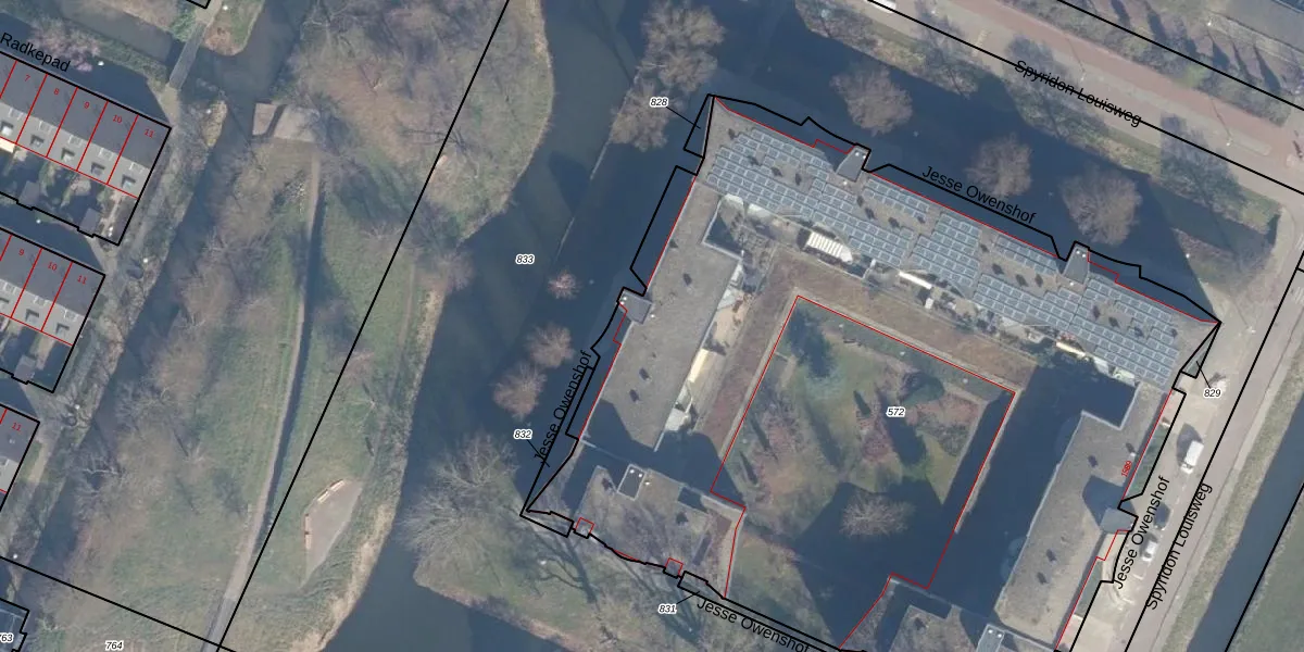 Het perceel waarop Jesse Owenshof 57 staat heeft een oppervlakte van 5940 m². Dit is een zeer groot perceel. De perceeloppervlakte wordt geregistreerd door het Kadaster. Gedetailleerde informatie over de maten van dit perceel kunt u vinden in het rapport Kadastrale kaart met maatvoering van Jesse Owenshof 57.