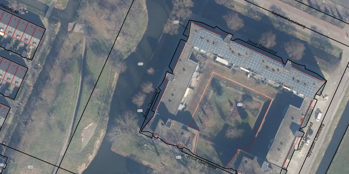 Het perceel waarop Jesse Owenshof 62 staat heeft een oppervlakte van 5940 m². Dit is een zeer groot perceel. De perceeloppervlakte wordt geregistreerd door het Kadaster. Gedetailleerde informatie over de maten van dit perceel kunt u vinden in het rapport Kadastrale kaart met maatvoering van Jesse Owenshof 62.