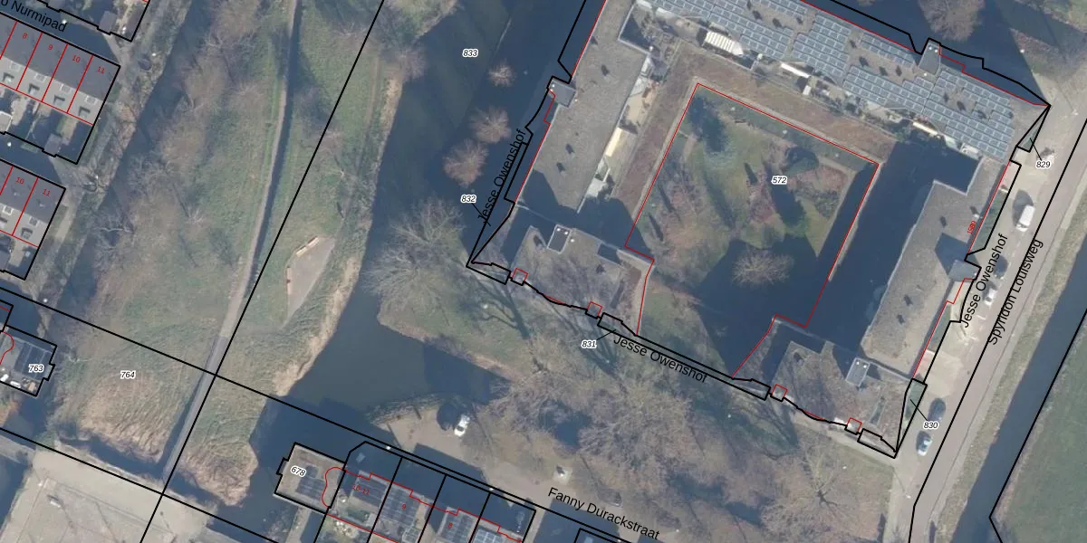Het perceel waarop Jesse Owenshof 65 staat heeft een oppervlakte van 5940 m². Dit is een zeer groot perceel. De perceeloppervlakte wordt geregistreerd door het Kadaster. Gedetailleerde informatie over de maten van dit perceel kunt u vinden in het rapport Kadastrale kaart met maatvoering van Jesse Owenshof 65.