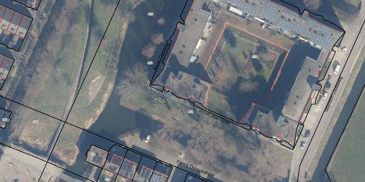 Het perceel waarop Jesse Owenshof 70 staat heeft een oppervlakte van 5940 m². Dit is een zeer groot perceel. De perceeloppervlakte wordt geregistreerd door het Kadaster. Gedetailleerde informatie over de maten van dit perceel kunt u vinden in het rapport Kadastrale kaart met maatvoering van Jesse Owenshof 70.