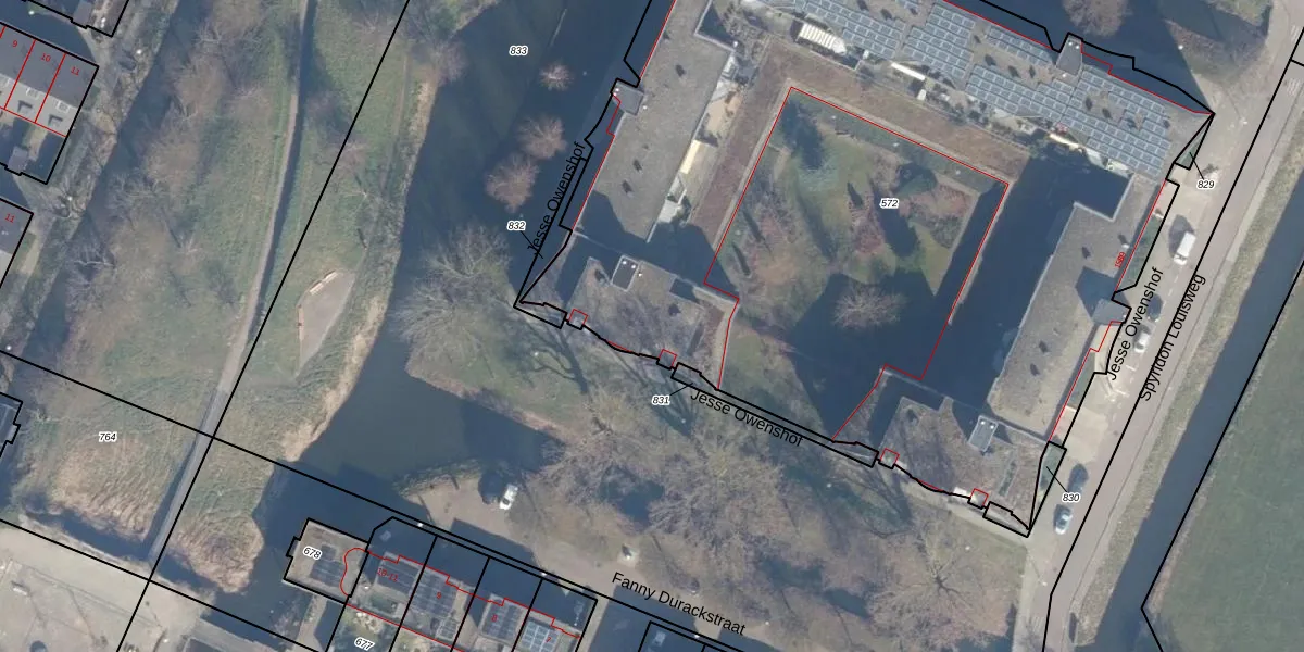 Het perceel waarop Jesse Owenshof 75 staat heeft een oppervlakte van 5940 m². Dit is een zeer groot perceel. De perceeloppervlakte wordt geregistreerd door het Kadaster. Gedetailleerde informatie over de maten van dit perceel kunt u vinden in het rapport Kadastrale kaart met maatvoering van Jesse Owenshof 75.