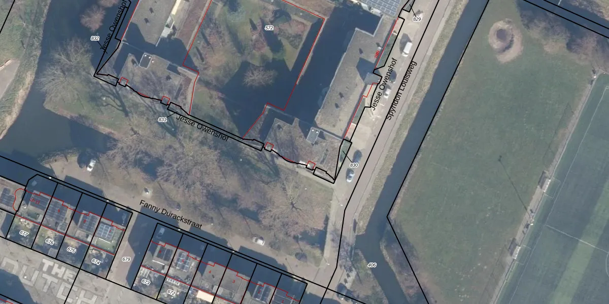 Het perceel waarop Jesse Owenshof 88 staat heeft een oppervlakte van 5940 m². Dit is een zeer groot perceel. De perceeloppervlakte wordt geregistreerd door het Kadaster. Gedetailleerde informatie over de maten van dit perceel kunt u vinden in het rapport Kadastrale kaart met maatvoering van Jesse Owenshof 88.