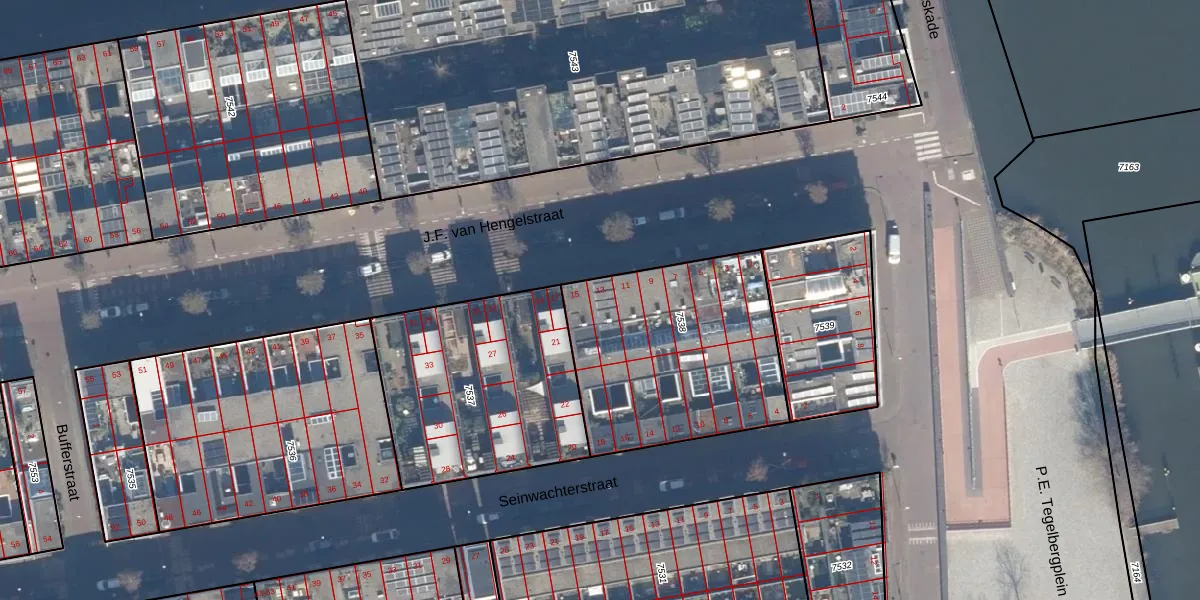 Het perceel waarop het adres ligt is ASD02-A-7538. De afkorting 'ASD02' staat voor kadastrale gemeente Amsterdam. Het perceel is kleiner dan gemiddeld in Amsterdam. Het perceel is 979 m² groot, terwijl het gemiddelde ligt op 2763,93 m². Het grootste perceel in de kadastrale gemeente is 14,3 ha. Het kleinste perceel heeft een oppervlakte van 0 m². Op het perceel zijn 16 adressen aanwezig. In de Basisregistratie Kadaster (BRK) werden de grenzen van het perceel geregistreerd op 11-10-2006.