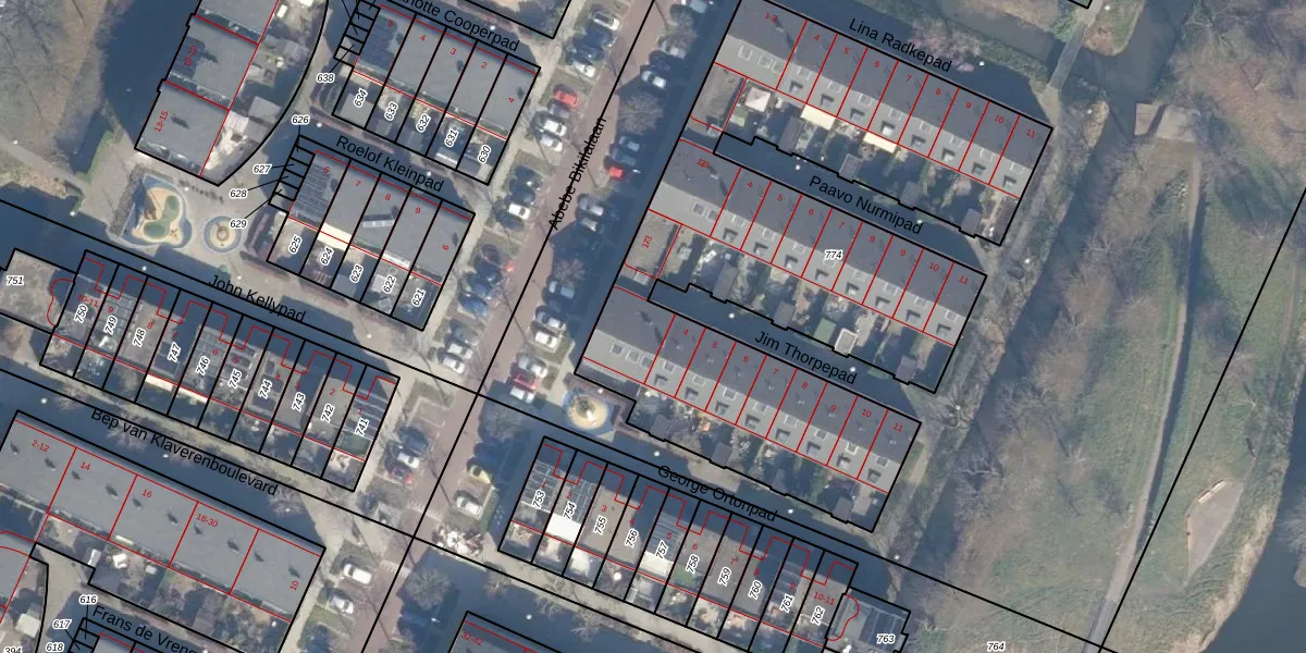 Het perceel waarop Jim Thorpepad 1 staat heeft een oppervlakte van 3025 m². Dit is een zeer groot perceel. De perceeloppervlakte wordt geregistreerd door het Kadaster. Gedetailleerde informatie over de maten van dit perceel kunt u vinden in het rapport Kadastrale kaart met maatvoering van Jim Thorpepad 1.