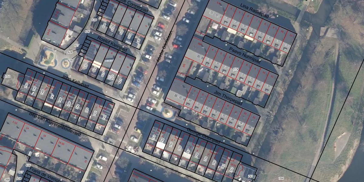 Het perceel waarop Jim Thorpepad 2 staat heeft een oppervlakte van 3025 m². Dit is een zeer groot perceel. De perceeloppervlakte wordt geregistreerd door het Kadaster. Gedetailleerde informatie over de maten van dit perceel kunt u vinden in het rapport Kadastrale kaart met maatvoering van Jim Thorpepad 2.