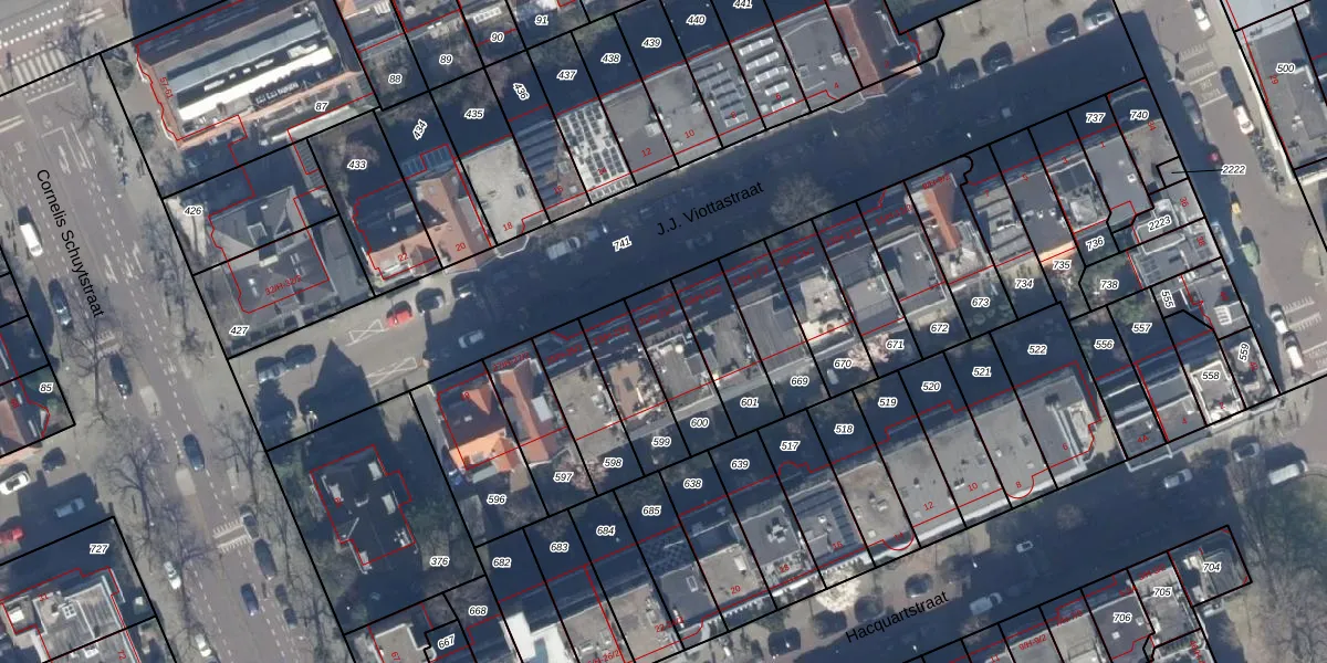 Het perceel waarop J.J. Viottastraat 21-2 staat heeft een oppervlakte van 197 m². Dit is een middelgroot perceel. De perceeloppervlakte wordt geregistreerd door het Kadaster. Gedetailleerde informatie over de maten van dit perceel kunt u vinden in het rapport Kadastrale kaart met maatvoering van J.J. Viottastraat 21-2.