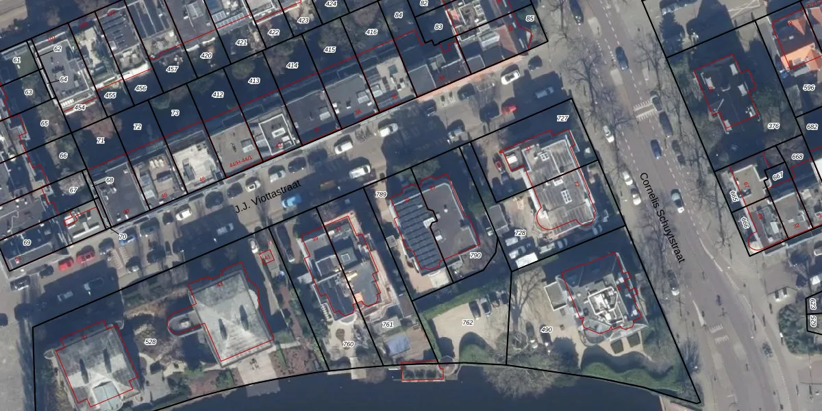 Het perceel waarop J.J. Viottastraat 35 staat heeft een oppervlakte van 354 m². Dit is een groot perceel. De perceeloppervlakte wordt geregistreerd door het Kadaster. Gedetailleerde informatie over de maten van dit perceel kunt u vinden in het rapport Kadastrale kaart met maatvoering van J.J. Viottastraat 35.