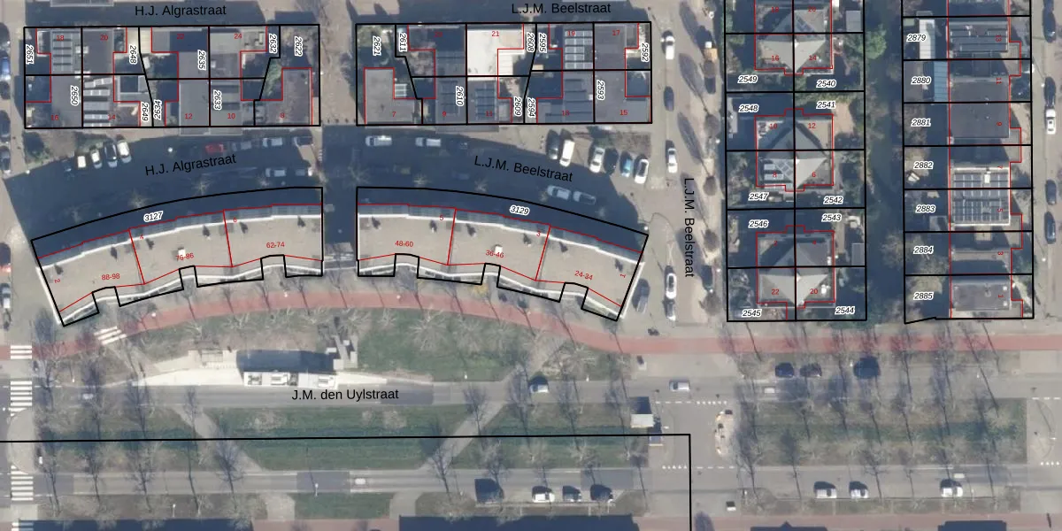 Het perceel waarop J.M. den Uylstraat 36 staat heeft een oppervlakte van 840 m². Dit is een groot perceel. De perceeloppervlakte wordt geregistreerd door het Kadaster. Gedetailleerde informatie over de maten van dit perceel kunt u vinden in het rapport Kadastrale kaart met maatvoering van J.M. den Uylstraat 36.