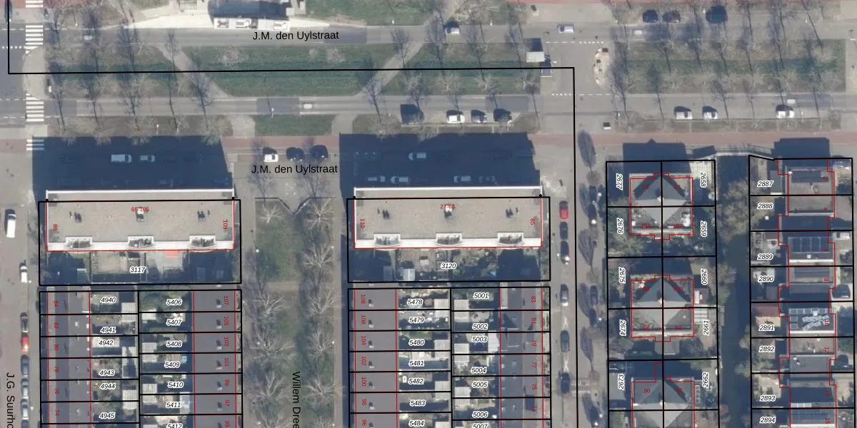 Het perceel waarop J.M. den Uylstraat 37 staat heeft een oppervlakte van 920 m². Dit is een groot perceel. De perceeloppervlakte wordt geregistreerd door het Kadaster. Gedetailleerde informatie over de maten van dit perceel kunt u vinden in het rapport Kadastrale kaart met maatvoering van J.M. den Uylstraat 37.