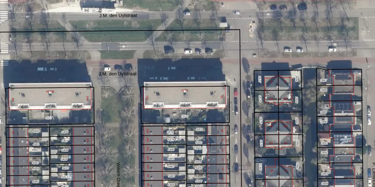 Het perceel waarop J.M. den Uylstraat 47 staat heeft een oppervlakte van 920 m². Dit is een groot perceel. De perceeloppervlakte wordt geregistreerd door het Kadaster. Gedetailleerde informatie over de maten van dit perceel kunt u vinden in het rapport Kadastrale kaart met maatvoering van J.M. den Uylstraat 47.