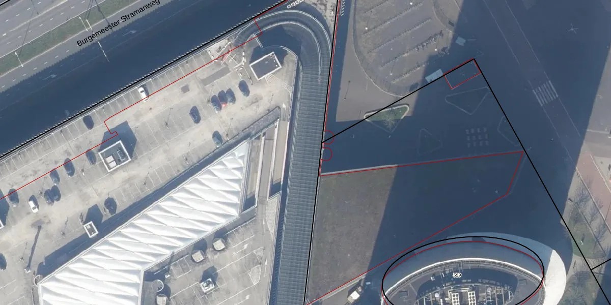 Het perceel waarop Johan Cruijff Boulevard 100 staat heeft een oppervlakte van 2,8 ha. Dit is een zeer groot perceel. De perceeloppervlakte wordt geregistreerd door het Kadaster. Gedetailleerde informatie over de maten van dit perceel kunt u vinden in het rapport Kadastrale kaart met maatvoering van Johan Cruijff Boulevard 100.