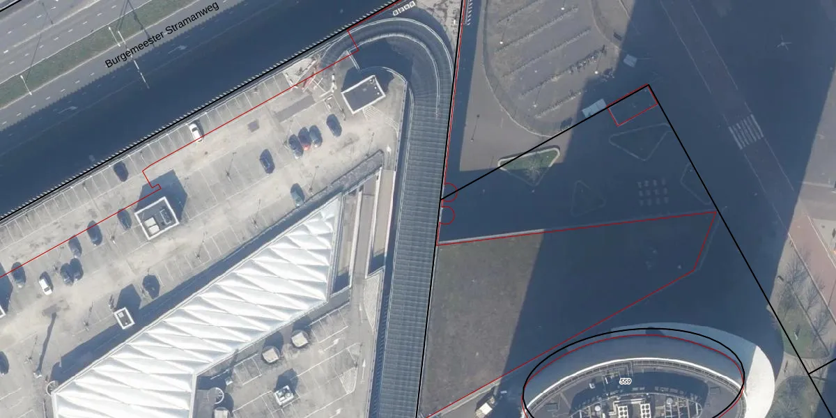 Het perceel waarop Johan Cruijff Boulevard 104 staat heeft een oppervlakte van 2,8 ha. Dit is een zeer groot perceel. De perceeloppervlakte wordt geregistreerd door het Kadaster. Gedetailleerde informatie over de maten van dit perceel kunt u vinden in het rapport Kadastrale kaart met maatvoering van Johan Cruijff Boulevard 104.