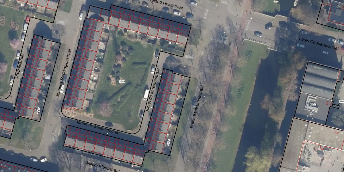 Het perceel waarop Johan de Meesterstraat 2-H staat heeft een oppervlakte van 1347 m². Dit is een zeer groot perceel. De perceeloppervlakte wordt geregistreerd door het Kadaster. Gedetailleerde informatie over de maten van dit perceel kunt u vinden in het rapport Kadastrale kaart met maatvoering van Johan de Meesterstraat 2-H.
