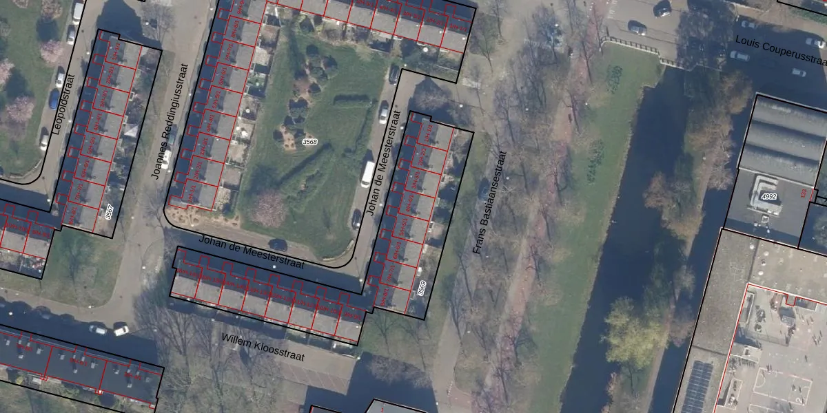 Het perceel waarop Johan de Meesterstraat 4-1 staat heeft een oppervlakte van 1347 m². Dit is een zeer groot perceel. De perceeloppervlakte wordt geregistreerd door het Kadaster. Gedetailleerde informatie over de maten van dit perceel kunt u vinden in het rapport Kadastrale kaart met maatvoering van Johan de Meesterstraat 4-1.