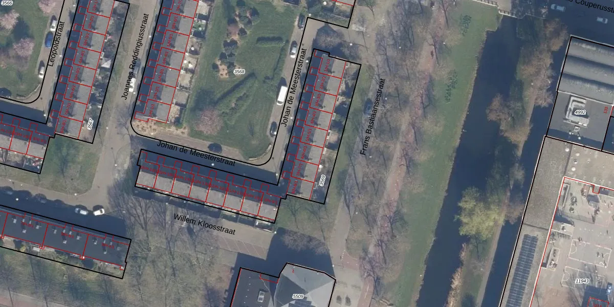Het perceel waarop Johan de Meesterstraat 6-H staat heeft een oppervlakte van 1347 m². Dit is een zeer groot perceel. De perceeloppervlakte wordt geregistreerd door het Kadaster. Gedetailleerde informatie over de maten van dit perceel kunt u vinden in het rapport Kadastrale kaart met maatvoering van Johan de Meesterstraat 6-H.