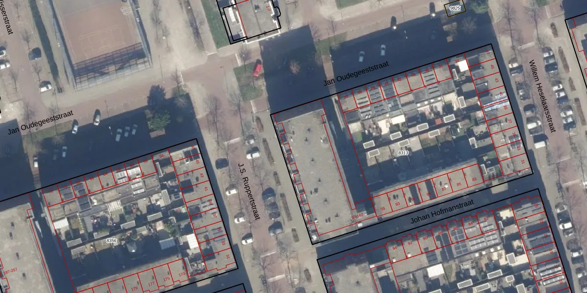 Het perceel waarop Johan Hofmanstraat 105 staat heeft een oppervlakte van 3681 m². Dit is een zeer groot perceel. De perceeloppervlakte wordt geregistreerd door het Kadaster. Gedetailleerde informatie over de maten van dit perceel kunt u vinden in het rapport Kadastrale kaart met maatvoering van Johan Hofmanstraat 105.