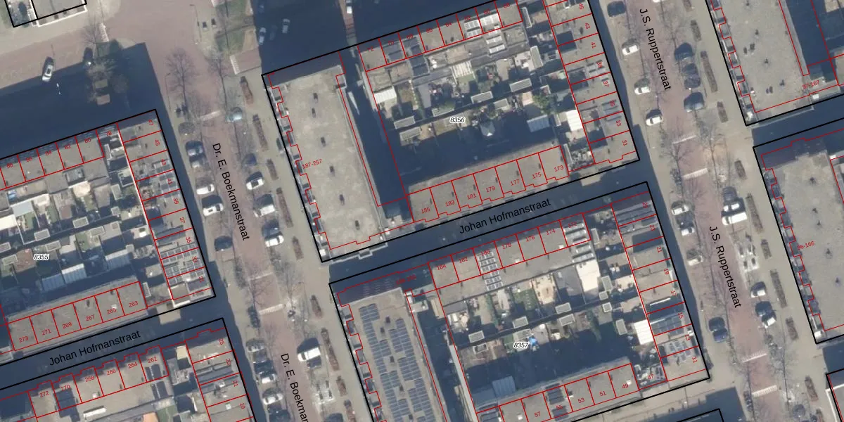 Johan Hofmanstraat 185 is gelegen op kadastraal perceel STN02E8356. Deze kadastrale aanduiding is uniek en wordt gebruikt door het Kadaster om eigendomsrechten en andere zakelijke rechten vast te leggen. Het perceel maakt onderdeel uit van de kadastrale gemeente Sloten Noord-Holland.