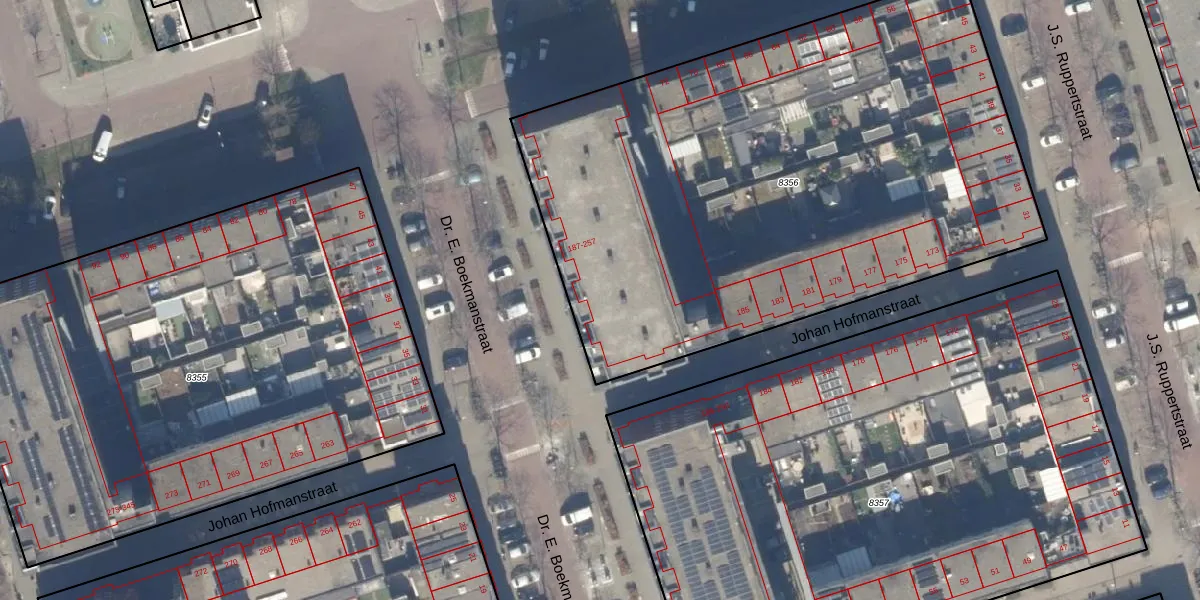 Johan Hofmanstraat 189 is gelegen op kadastraal perceel STN02E8356. Deze kadastrale aanduiding is uniek en wordt gebruikt door het Kadaster om eigendomsrechten en andere zakelijke rechten vast te leggen. Het perceel maakt onderdeel uit van de kadastrale gemeente Sloten Noord-Holland.