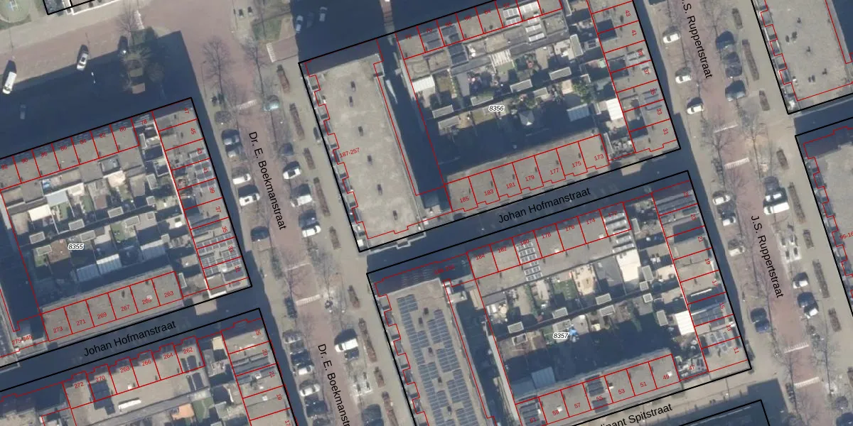 Het perceel waarop Johan Hofmanstraat 203 staat heeft een oppervlakte van 3679 m². Dit is een zeer groot perceel. De perceeloppervlakte wordt geregistreerd door het Kadaster. Gedetailleerde informatie over de maten van dit perceel kunt u vinden in het rapport Kadastrale kaart met maatvoering van Johan Hofmanstraat 203.