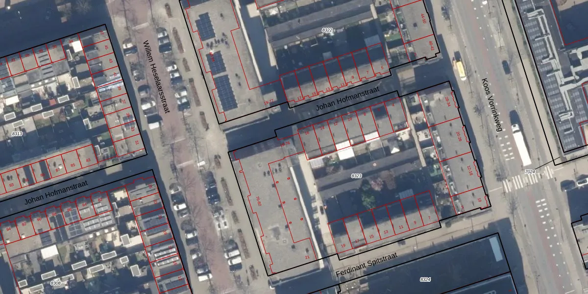Het perceel waarop Johan Hofmanstraat 22 staat heeft een oppervlakte van 3693 m². Dit is een zeer groot perceel. De perceeloppervlakte wordt geregistreerd door het Kadaster. Gedetailleerde informatie over de maten van dit perceel kunt u vinden in het rapport Kadastrale kaart met maatvoering van Johan Hofmanstraat 22.