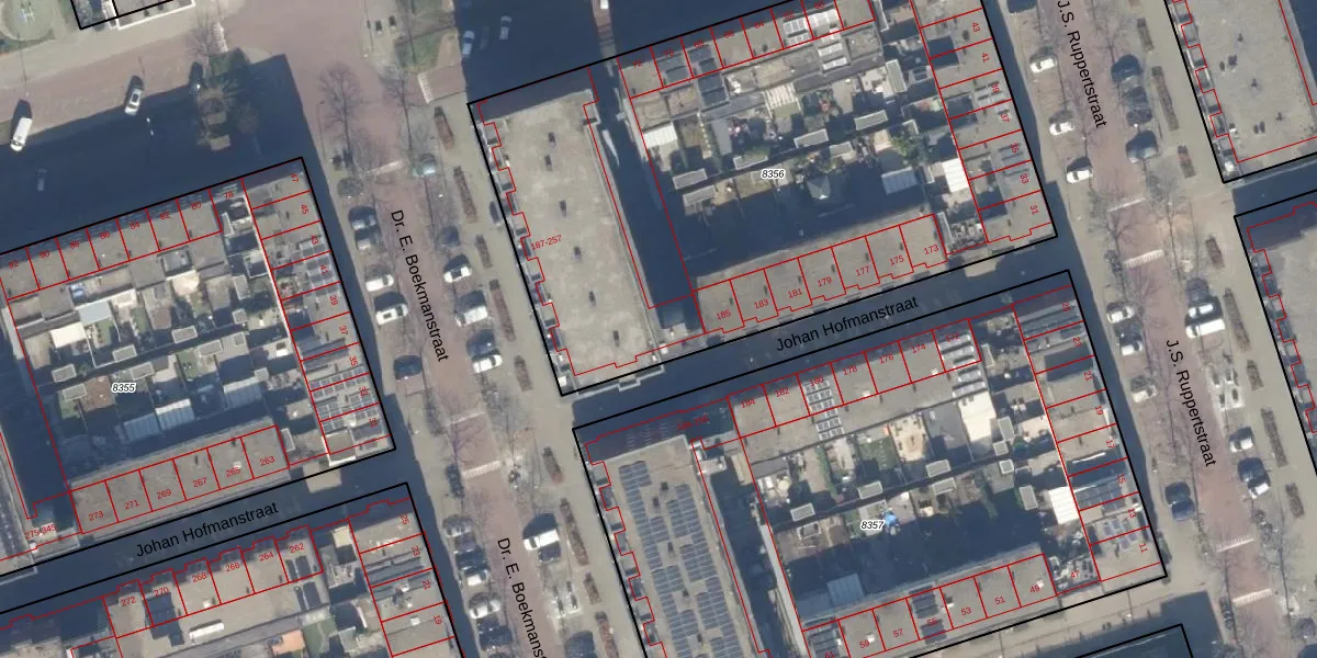 Johan Hofmanstraat 233 is gelegen op kadastraal perceel STN02E8356. Deze kadastrale aanduiding is uniek en wordt gebruikt door het Kadaster om eigendomsrechten en andere zakelijke rechten vast te leggen. Het perceel maakt onderdeel uit van de kadastrale gemeente Sloten Noord-Holland.