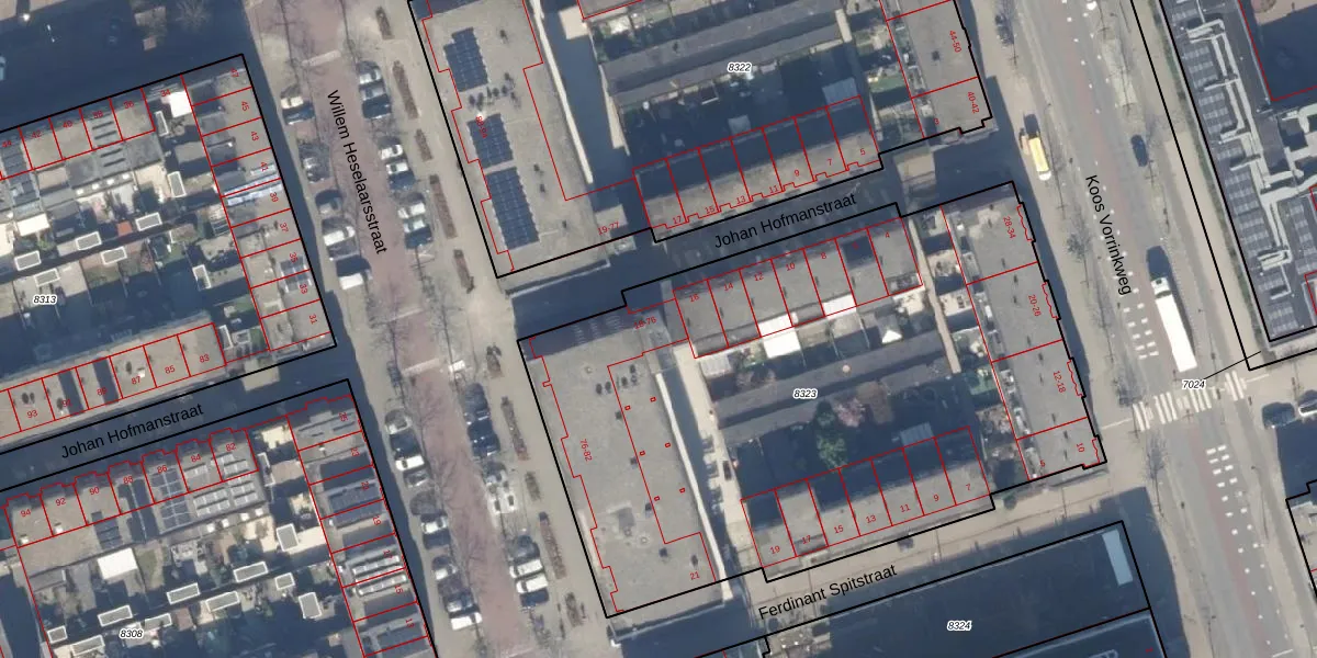 Het perceel waarop Johan Hofmanstraat 26 staat heeft een oppervlakte van 3693 m². Dit is een zeer groot perceel. De perceeloppervlakte wordt geregistreerd door het Kadaster. Gedetailleerde informatie over de maten van dit perceel kunt u vinden in het rapport Kadastrale kaart met maatvoering van Johan Hofmanstraat 26.