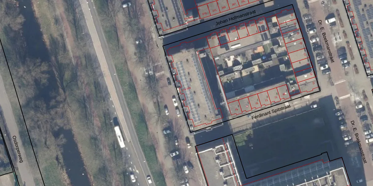 Het perceel waarop Johan Hofmanstraat 280 staat heeft een oppervlakte van 3564 m². Dit is een zeer groot perceel. De perceeloppervlakte wordt geregistreerd door het Kadaster. Gedetailleerde informatie over de maten van dit perceel kunt u vinden in het rapport Kadastrale kaart met maatvoering van Johan Hofmanstraat 280.