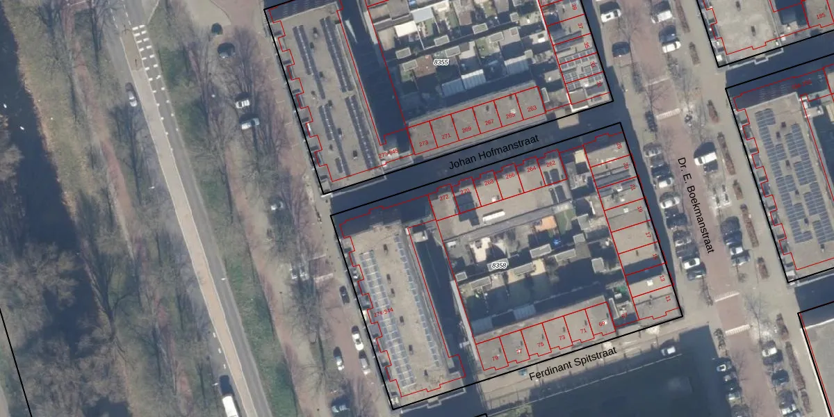 Het perceel waarop Johan Hofmanstraat 332 staat heeft een oppervlakte van 3564 m². Dit is een zeer groot perceel. De perceeloppervlakte wordt geregistreerd door het Kadaster. Gedetailleerde informatie over de maten van dit perceel kunt u vinden in het rapport Kadastrale kaart met maatvoering van Johan Hofmanstraat 332.