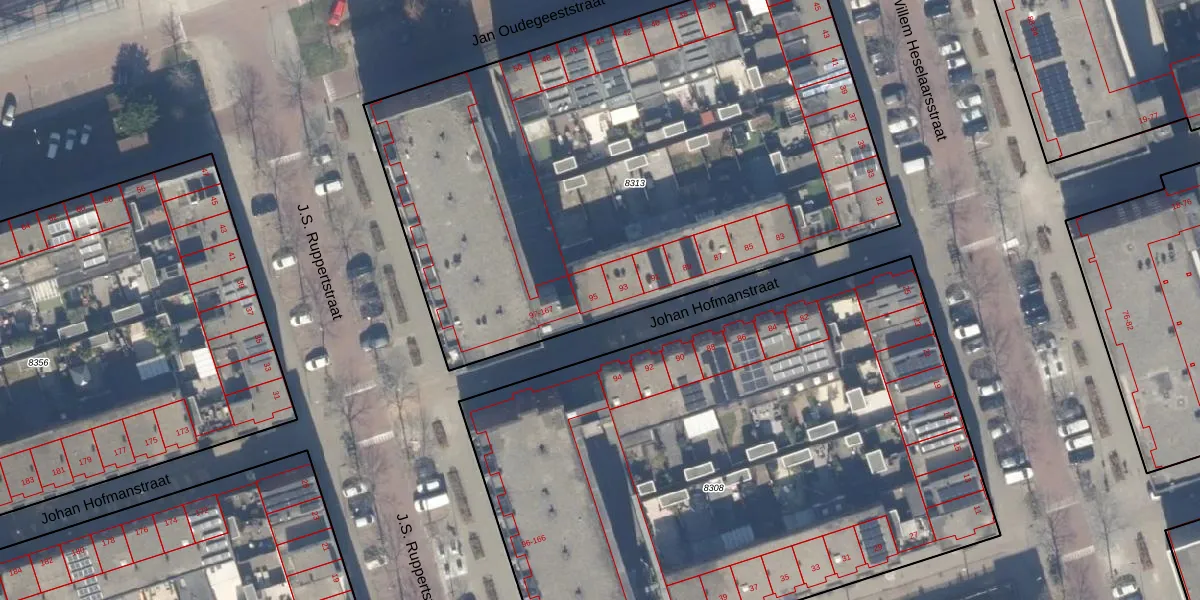 Het perceel waarop Johan Hofmanstraat 95 staat heeft een oppervlakte van 3681 m². Dit is een zeer groot perceel. De perceeloppervlakte wordt geregistreerd door het Kadaster. Gedetailleerde informatie over de maten van dit perceel kunt u vinden in het rapport Kadastrale kaart met maatvoering van Johan Hofmanstraat 95.