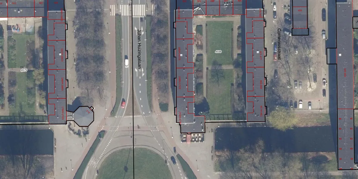 Het perceel waarop Johan Huizingalaan 171-2 staat heeft een oppervlakte van 3557 m². Dit is een zeer groot perceel. De perceeloppervlakte wordt geregistreerd door het Kadaster. Gedetailleerde informatie over de maten van dit perceel kunt u vinden in het rapport Kadastrale kaart met maatvoering van Johan Huizingalaan 171-2.