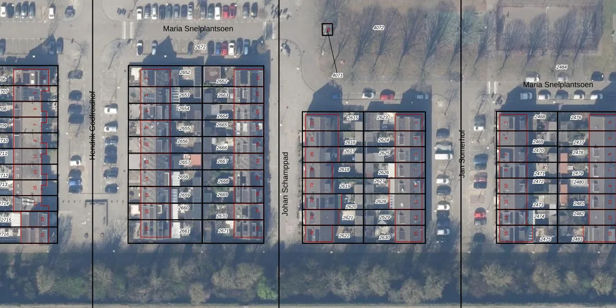 Gebruik de zoekbalk of klik op een perceel voor informatie over de adressen binnen dit perceel.