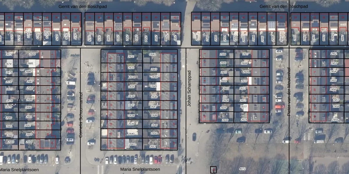 Het perceel waarop Johan Schamppad 7 staat heeft een oppervlakte van 108 m². Dit is een middelgroot perceel. De perceeloppervlakte wordt geregistreerd door het Kadaster. Gedetailleerde informatie over de maten van dit perceel kunt u vinden in het rapport Kadastrale kaart met maatvoering van Johan Schamppad 7.