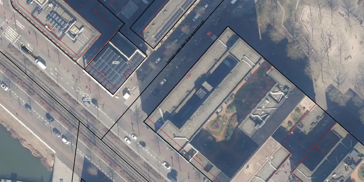 Het perceel waarop Johan van der Keukenstraat 2 staat heeft een oppervlakte van 1,2 ha. Dit is een zeer groot perceel. De perceeloppervlakte wordt geregistreerd door het Kadaster. Gedetailleerde informatie over de maten van dit perceel kunt u vinden in het rapport Kadastrale kaart met maatvoering van Johan van der Keukenstraat 2.