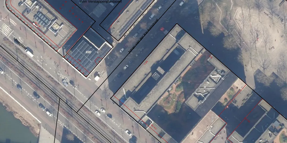 Het perceel waarop Johan van der Keukenstraat 46 staat heeft een oppervlakte van 1,2 ha. Dit is een zeer groot perceel. De perceeloppervlakte wordt geregistreerd door het Kadaster. Gedetailleerde informatie over de maten van dit perceel kunt u vinden in het rapport Kadastrale kaart met maatvoering van Johan van der Keukenstraat 46.