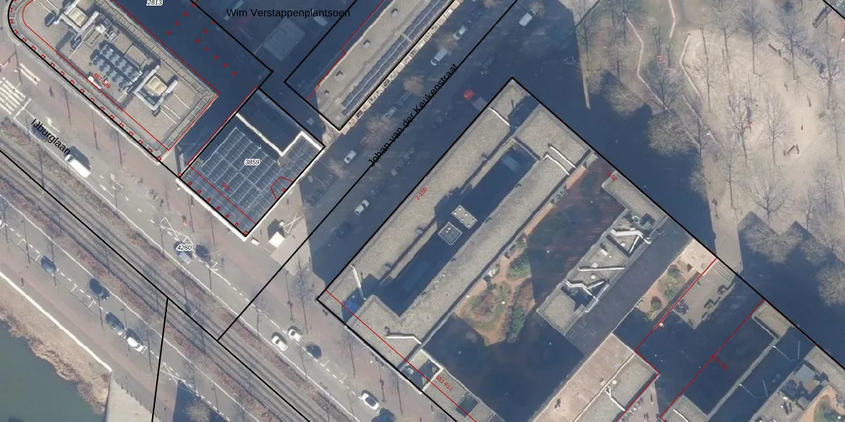 Het perceel waarop Johan van der Keukenstraat 76 staat heeft een oppervlakte van 1,2 ha. Dit is een zeer groot perceel. De perceeloppervlakte wordt geregistreerd door het Kadaster. Gedetailleerde informatie over de maten van dit perceel kunt u vinden in het rapport Kadastrale kaart met maatvoering van Johan van der Keukenstraat 76.