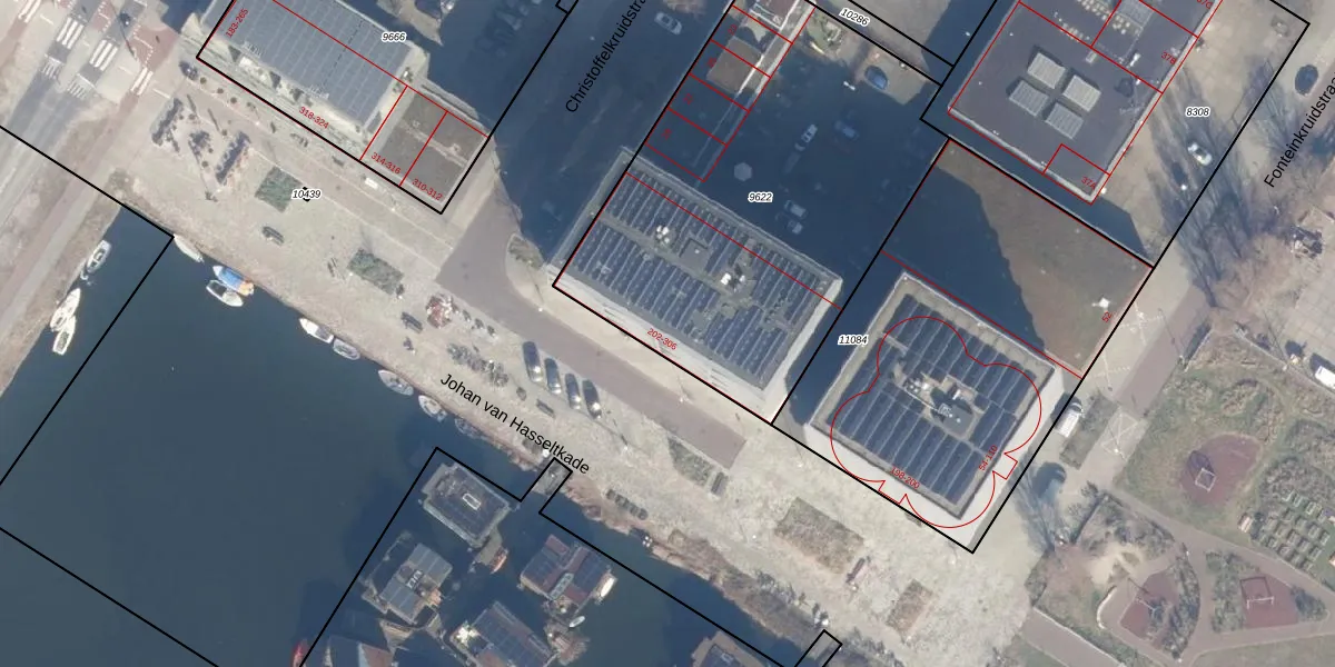 Het adres ligt op het perceel ASD07-K-9622, dat zich in de kadastrale gemeente Amsterdam bevindt. Het perceel is kleiner dan gemiddeld in Amsterdam. Het perceel is 2149 m² groot, terwijl het gemiddelde ligt op 3005,21 m². De grootste perceeloppervlakte in de kadastrale gemeente is 56,2 ha. De kleinste oppervlakte bedraagt 0 m². Op het perceel zijn 38 adressen aanwezig. De laatste wijziging in het de Basisregistratie Kadaster (BRK) was op 20-02-2018.